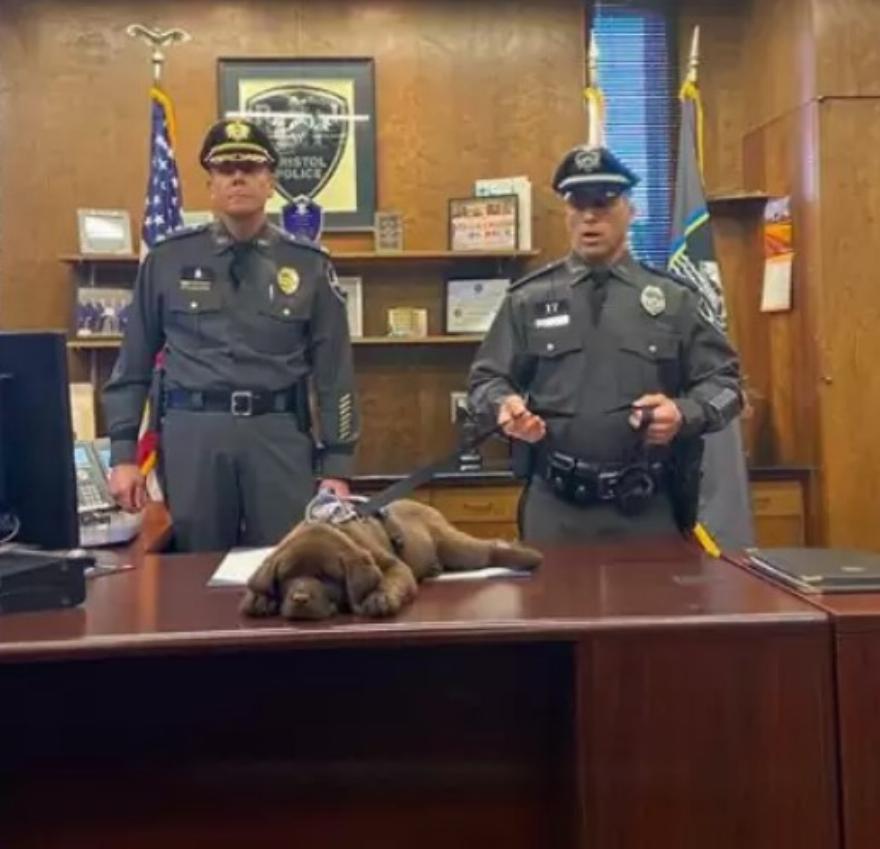 Η Δευτέρα ήταν μια μεγάλη μέρα για το νέο σκύλο K-9 του αστυνομικού τμήματος του Μπρίστολ, τον Brody. Το κουτάβι 12 εβδομάδων ξύπνησε νωρίς για την τελετή ορκωμοσίας του – και στη συνέχεια κατάφερε να κοιμηθεί σε όλη τη διάρκεια της τελετής.