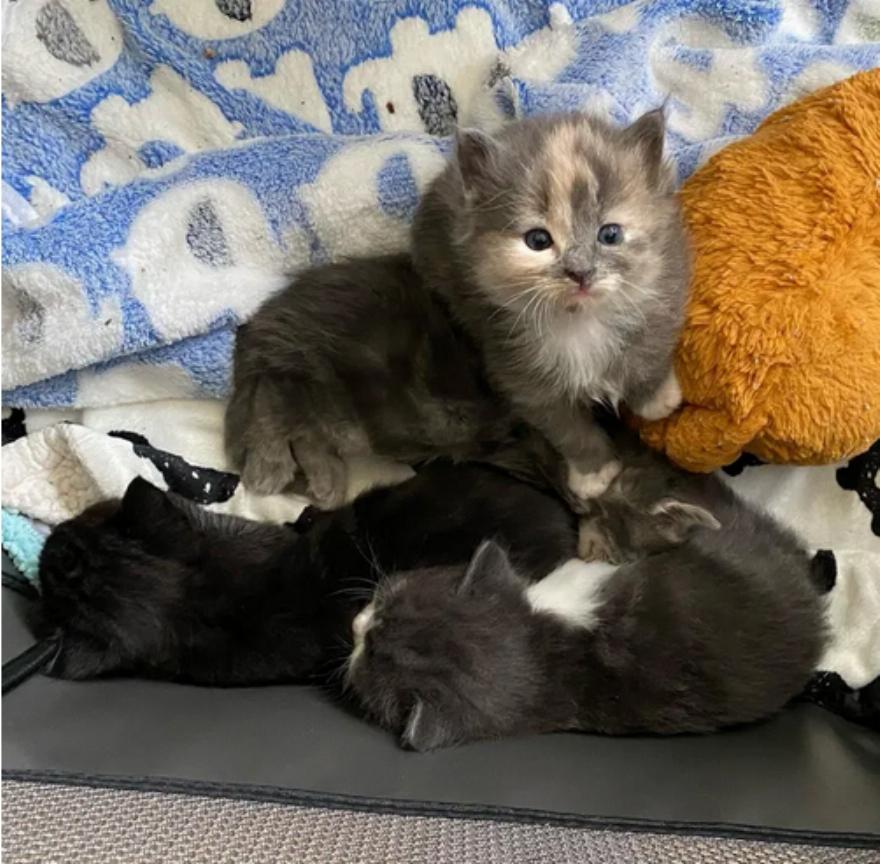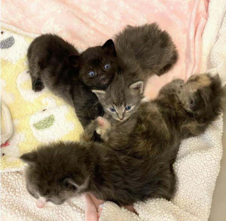 Τέσσερα γατάκια εντοπίστηκαν από δύο ανήσυχους πολίτες να παραπλανιούνται στους δρόμους . Η μητέρα γάτα ήταν άφαντη και δεν μπορούσαν να αφήσουν τα γατάκια έξω να τα βγάλουν πέρα μόνα τους.