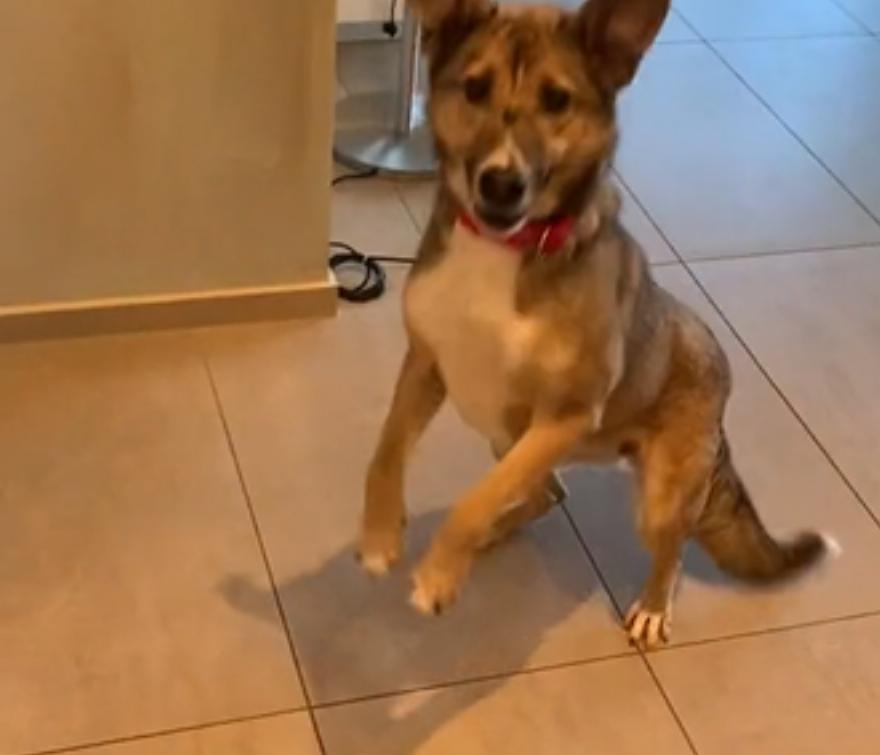 Ένα βίντεο με έναν σκύλο να χορεύει από ευχαρίστηση καθώς πρόκειται να φάει δείπνο έχει γίνει viral.