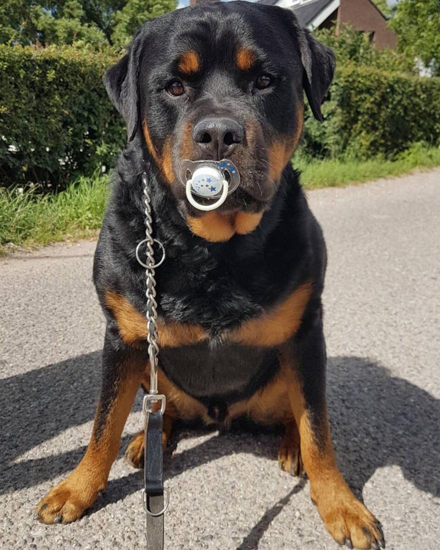 Το ροτβάιλερ Fred είναι το καλύτερο παράδειγμα ενός τεράστιου σκύλου φύλακα που ουσιαστικά είναι ένα μεγάλο μωρό, καθώς το μόνο παιχνίδι που πραγματικά θέλει για να τον ηρεμήσει είναι μια πιπίλα που προορίζεται για ένα ανθρώπινο μωρό. Ας το δούμε και μόνοι μας!