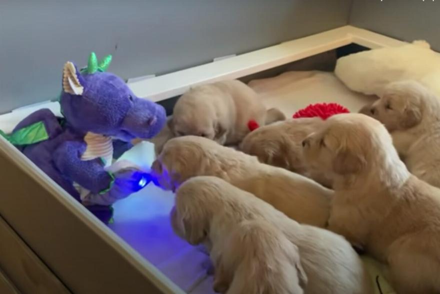 Το παρακάτω βίντεο δείχνει κουτάβια Golden Retriever 4 εβδομάδων να βιώνουν την ώρα του παραμυθιού με ένα Storytelling Dragon που ονομάζεται Dalton! Μπορείτε να δείτε ότι τα σκυλιά είναι εντελώς γοητευμένα από την ιστορία! Είναι παιδιά αλλά με γούνα καθώς στη συνέχεια αποκοιμούνται για έναν ωραίο υπνάκο! Πόσο χαριτωμένα είναι!