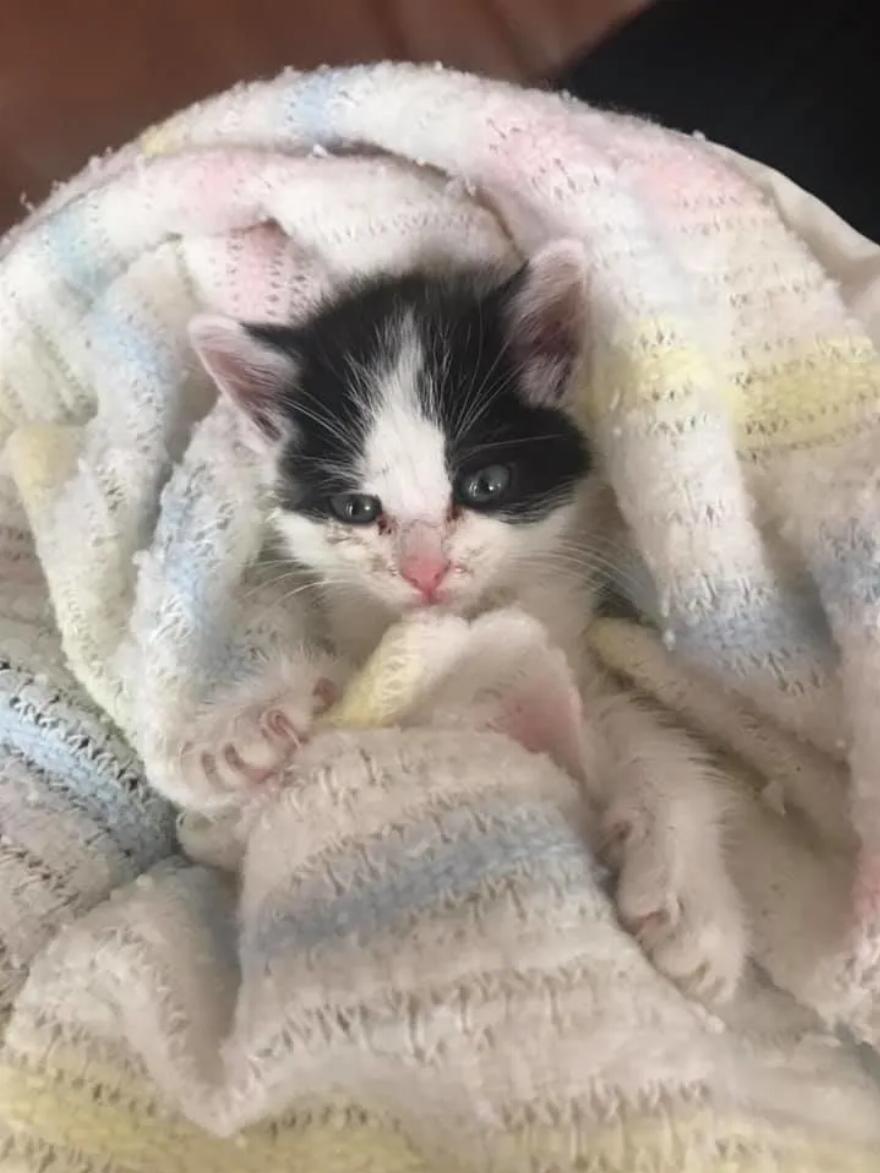 “Το γατάκι ήταν πολύ αδύνατο, ζυγίζοντας μόλις 350 γραμμάρια. Πιθανότατα δεν είχε φάει για πολύ καιρό. Ήταν πολύ τυχερό που βρέθηκε”.