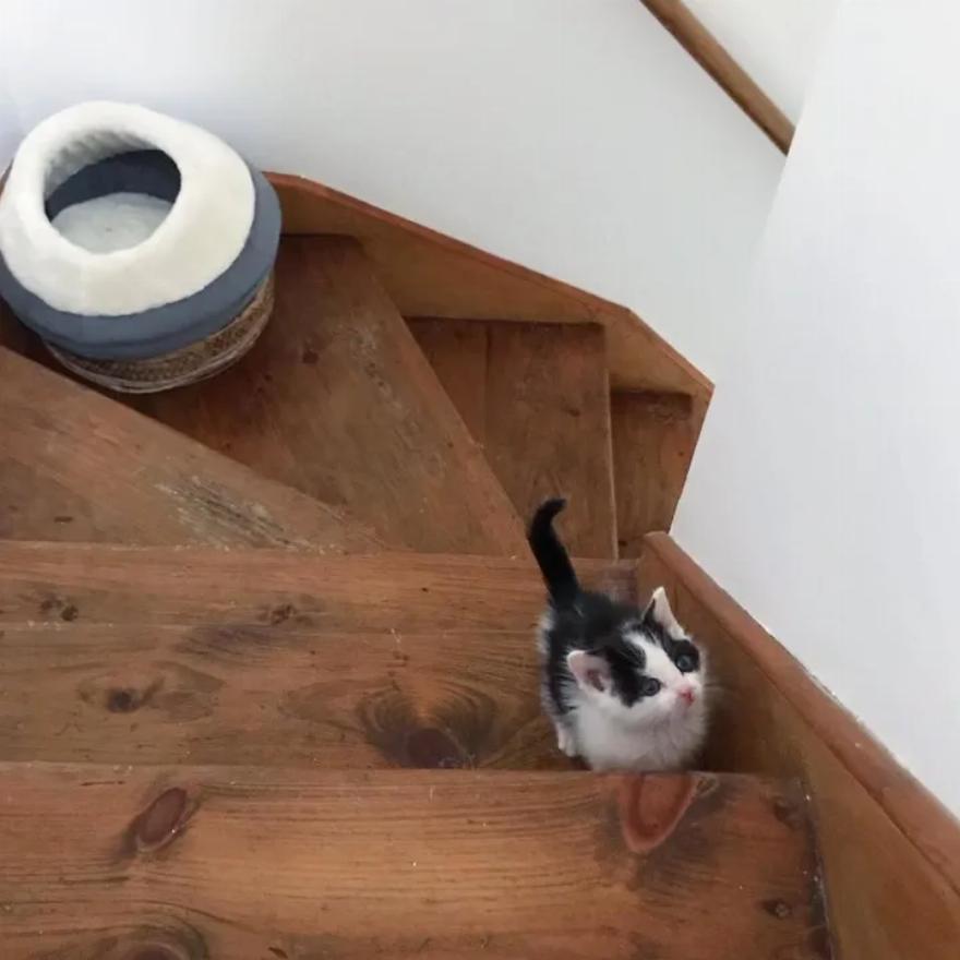 “Αντιγράφει όλα όσα κάνουν τα άλλα γατάκια. Έχει ήδη καταλάβει πώς να σκαρφαλώνει. Η ανάδοχη μητέρα του τον βρήκε στο δέντρο της γάτας ολομόναχο”.
