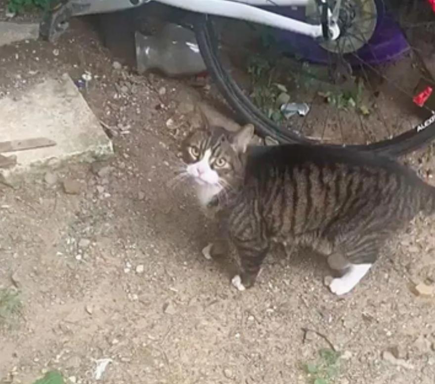 Ηλικιωμένη γάτα βρέθηκε σε μια αυλή ψάχνοντας για φαγητό