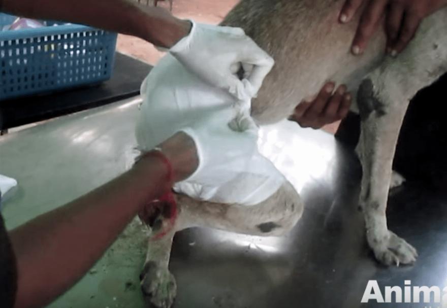 Έδεσαν την πληγή της και την έβαλαν σε ασφαλές μέρος όπου μπορούσε να ξεκουραστεί. Της έδωσαν ενδοφλέβια διατροφή, αντιβιοτικά και παυσίπονα.