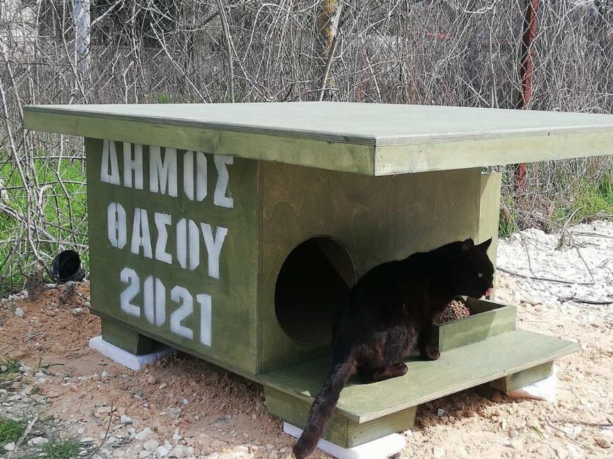 Ο Δήμος Θάσου απέδειξε το φιλοζωικό του πνεύμα με την εγκατάσταση δεκαπέντε πανέμορφων ξύλινων σπιτιών για αδέσποτα ζώα, προκειμένου να τους παρέχει στέγη, τροφή και νερό.