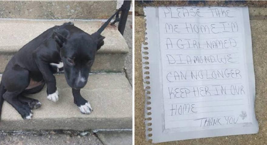 Το σημείωμα ανέφερε: “Παρακαλώ πάρτε με σπίτι. Είμαι ένα κορίτσι που με λένε Diamond. Δεν μπορούμε πλέον να την κρατήσουμε στο σπίτι μας”.