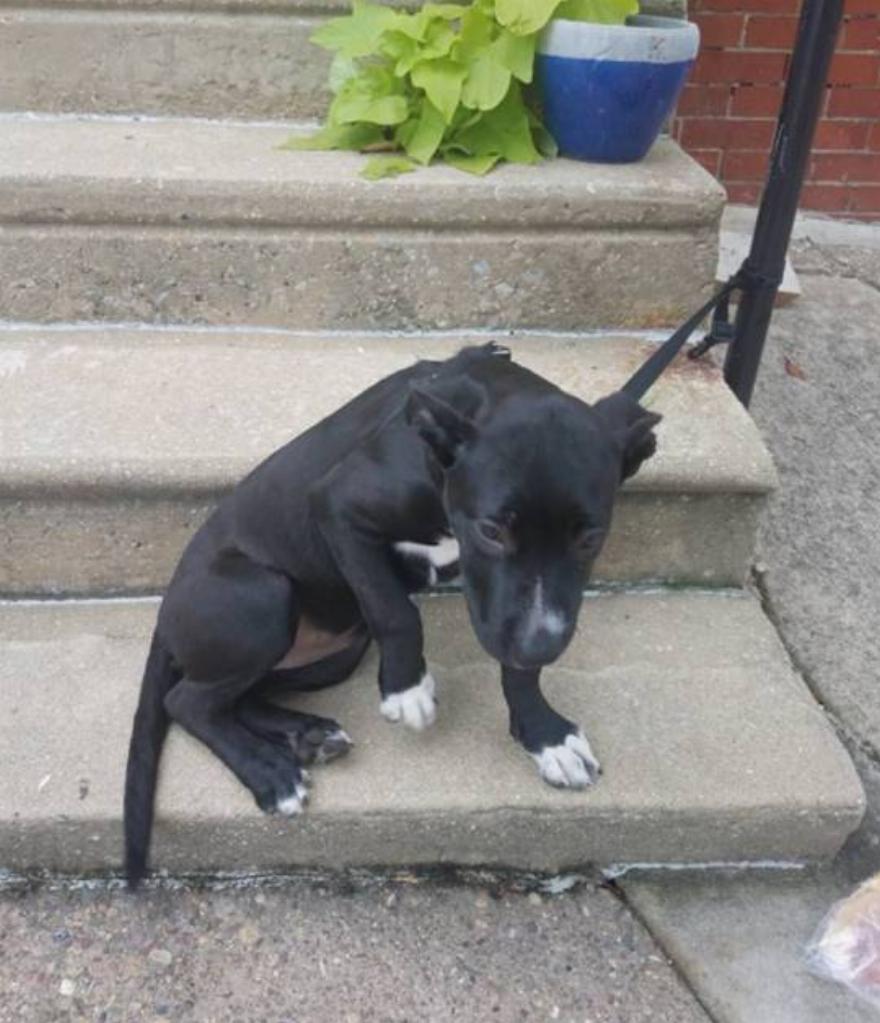 Ένα γλυκό κουταβάκι έμεινε ολομόναχο, εγκαταλελειμμένο , και δεμένο στα κάγκελα ενός κτιρίου