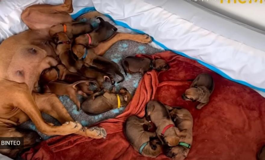 Παρά τις συνθήκες που βρισκόταν, αυτό το γενναίο σκυλί ξεπέρασε κάθε εμπόδιο. Γέννησε 15 αξιολάτρευτα κουτάβια.