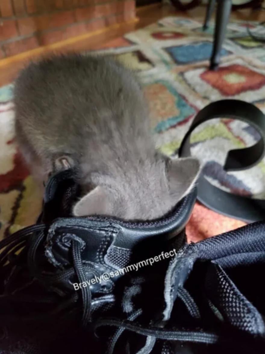 Το γατάκι, το οποίο ονομάστηκε Bravely, προσαρμόστηκε γρήγορα στη νέα του κατοικία με την οικογένεια.