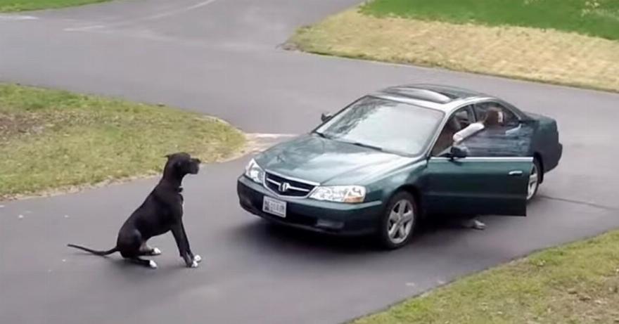 Μπορείτε να δείτε στο παρακάτω βίντεο ότι ο Great Dane περιμένει υπομονετικά τη μαμά του στο δρόμο ενώ εκείνη ήταν πολύ κοντά στο να γυρίσει σπίτι. Μόλις είδε το αυτοκίνητο της μαμάς του, άρχισε να πηδάει και να κουνάει την ουρά του από χαρά. Απλά δεν περίμενε να έρθει κοντά του, καθώς έτρεξε κατευθείαν προς το μέρος της μόλις εκείνη άνοιξε την πόρτα του αυτοκινήτου.