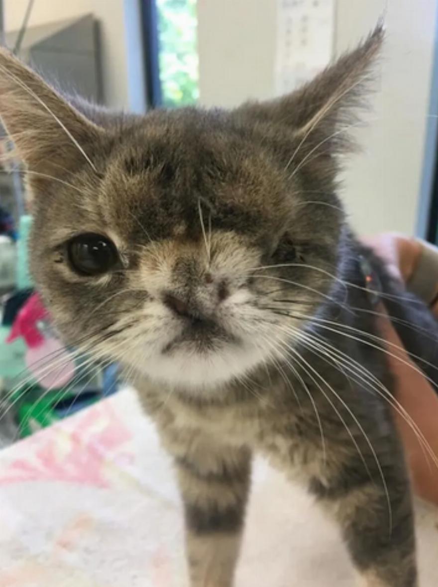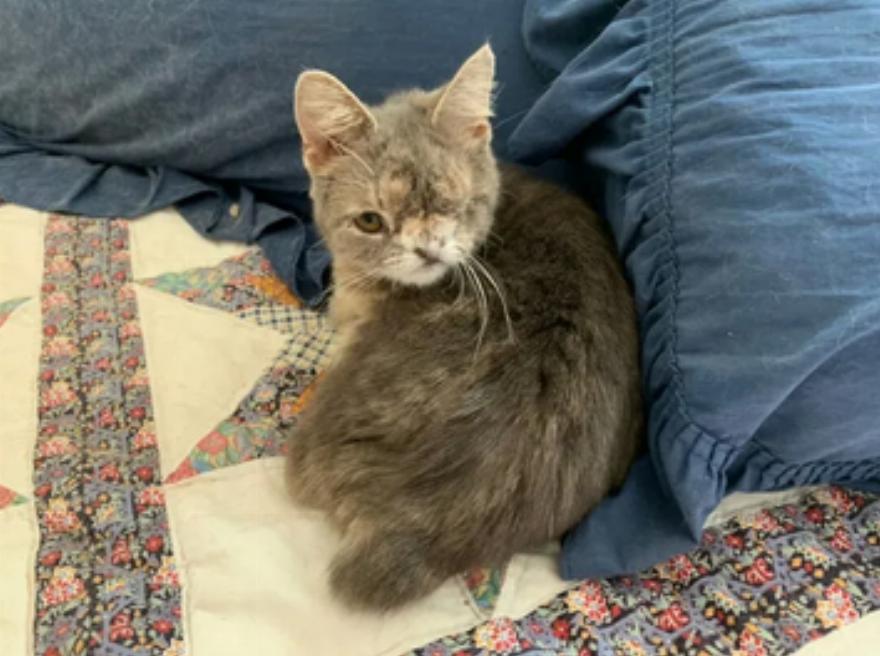 Η μονόφθαλμη γατούλα είναι πιο ευτυχισμένη όταν βρίσκεται αγκαλιά