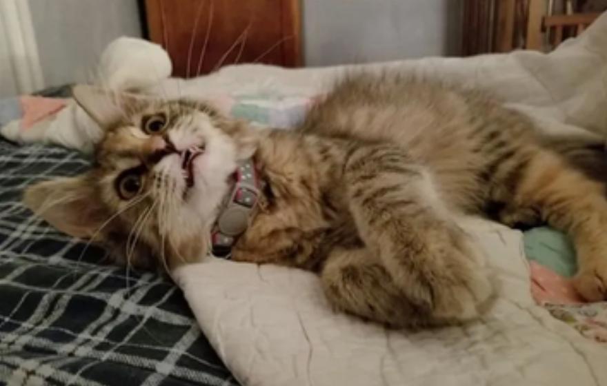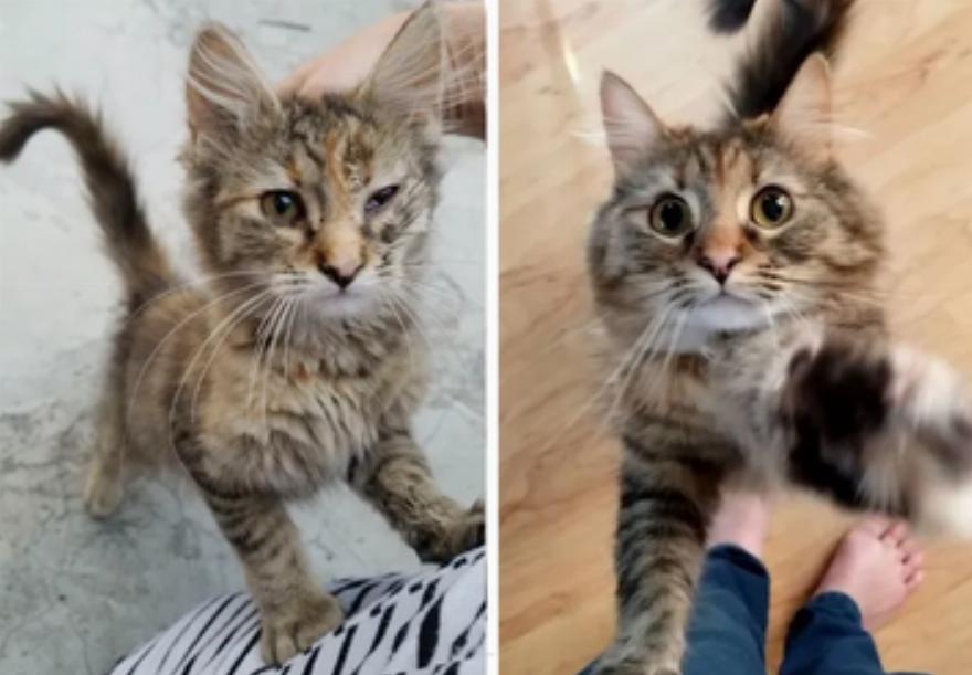 Το γατάκι έκανε βήματα προόδου κάθε μέρα και το μάτι και το πόδι της επουλώθηκαν καλά. Μόλις ξαναβρήκε την ενέργειά της, ήθελε να τρέξει και να σκαρφαλώσει. “Άρχισε αμέσως να μου δείχνει ότι είναι γάτα. Την τράβηξε το πληκτρολόγιο από τη στιγμή που το είδε”.