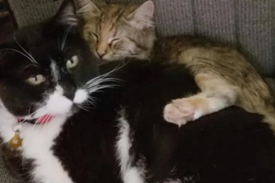 Η σκουρόχρωμη γατούλα κρατούσε το γατάκι καθαρό και περιποιημένο και το πρόσεχε σε κάθε του βήμα καθώς μεγάλωνε σε μια πανέμορφη, χνουδωτή γάτα.