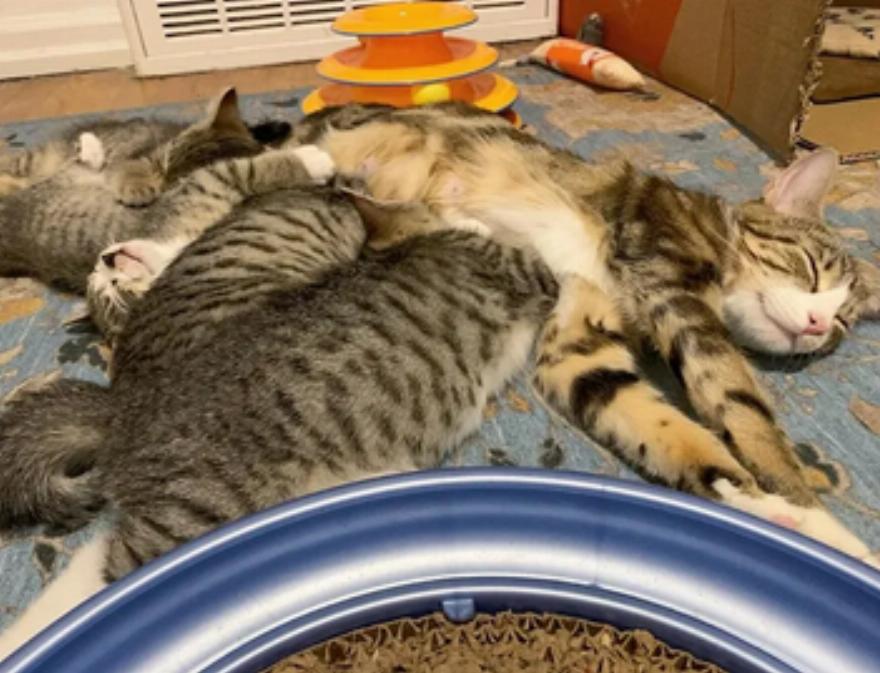 Η μαμά LaBelle ήταν τόσο χαρούμενη που είχε ένα ασφαλές μέρος για να μεγαλώσει τα γατάκια της. Όταν έκανε διάλειμμα από το θηλασμό, ερχόταν στην εθελόντρια για αγκαλιές.