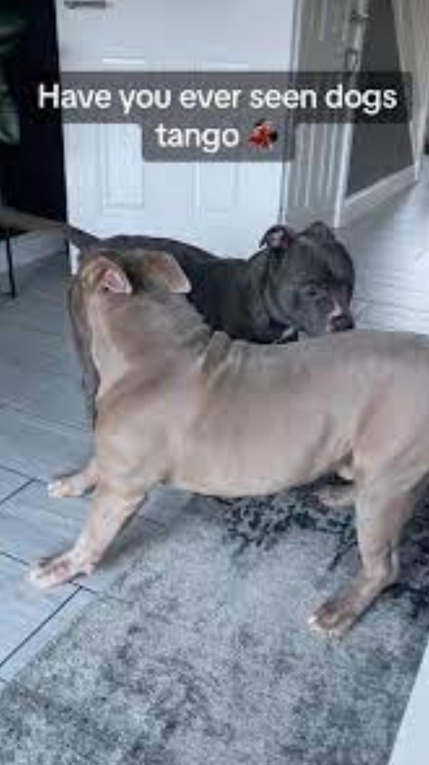 Το viral βίντεο, το οποίο έχει προβληθεί περισσότερες από 4,2 εκατομμύρια φορές από τότε που δημοσιεύτηκε για πρώτη φορά στο TikTok στις 20 Δεκεμβρίου, καταγράφει δύο σκυλιά Staffordshire bull terrier να δίνουν αυτό που μοιάζει πολύ με μια καυτή χορευτική παράσταση ενώ “παίζουν ξύλο”.