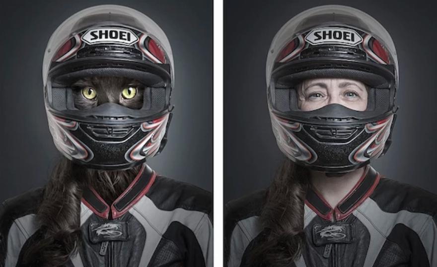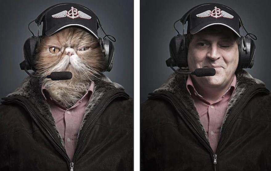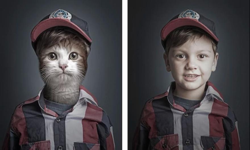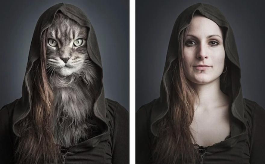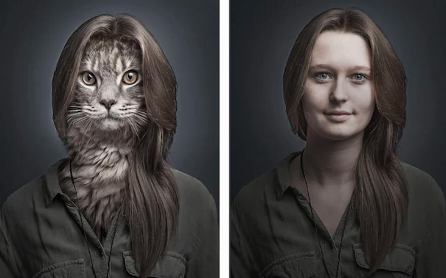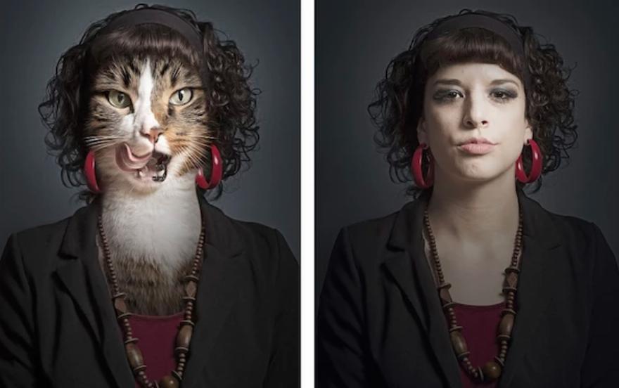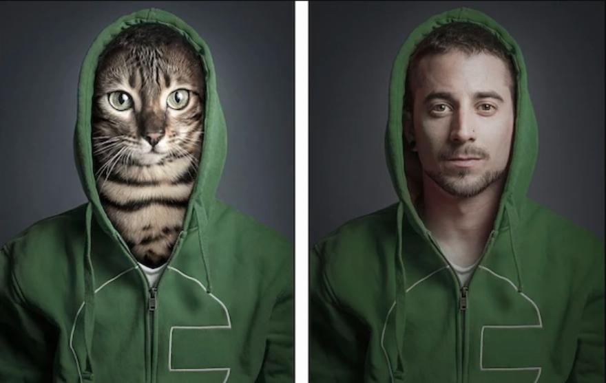 Μπορεί κάποιος να πει ότι λίγο πολύ το αποτέλεσμα είναι ανατριχιαστικό . Παλιότερα ο ίδιος φωτογράφος είχε κάνει με τον ίδιο τρόπο και μια σειρά φωτογραφιών παρόμοια με αυτή, μόνο που στη θέση της γάτας πυ ποζάρει δίπλα από το αφεντικό της υπήρχε σκύλος.