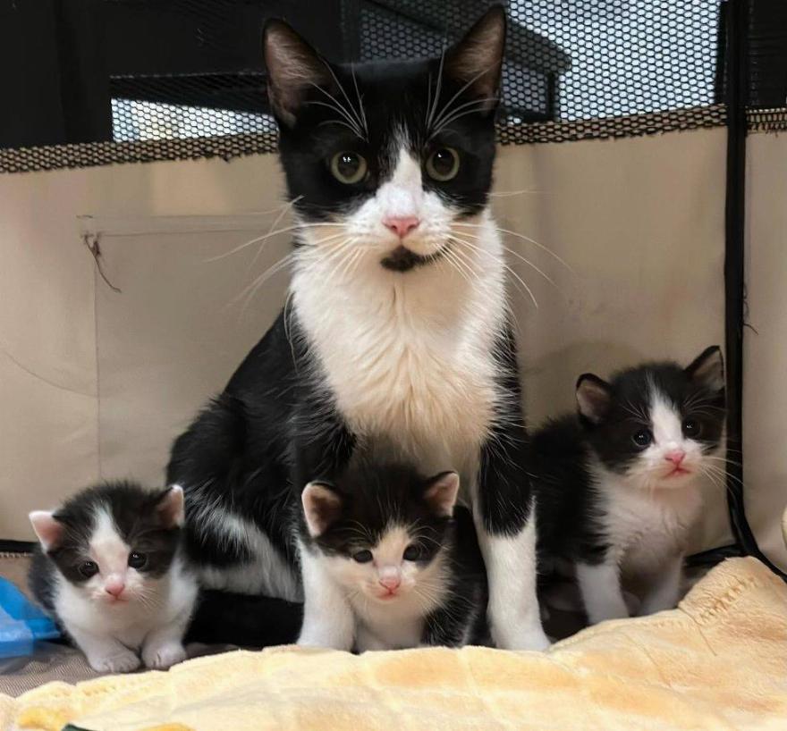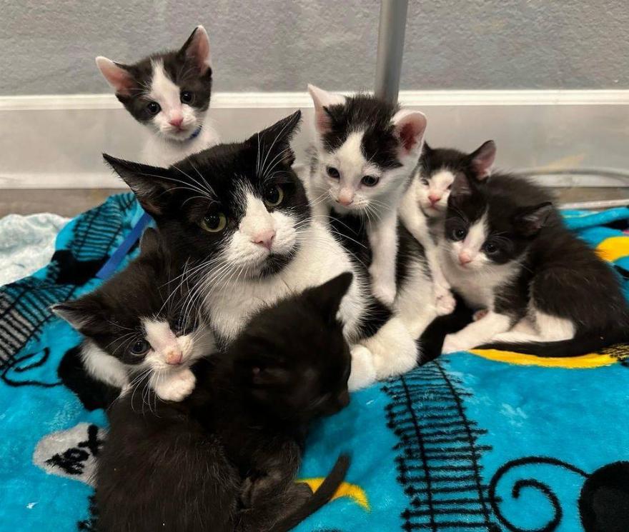 Μια γάτα τουξέντο και η τα 6 μικρά νεογέννητα γταάκια της μεταφέρθηκαν σε ένα καταφύγιο στην πόλη Wichita, KS, έχοντας απελπισμένα ανάγκη διάσωσης. Η Heidi Shoemaker της (in CO) έμαθε για την κατάστασή τους και έσπευσε να βοηθήσει.