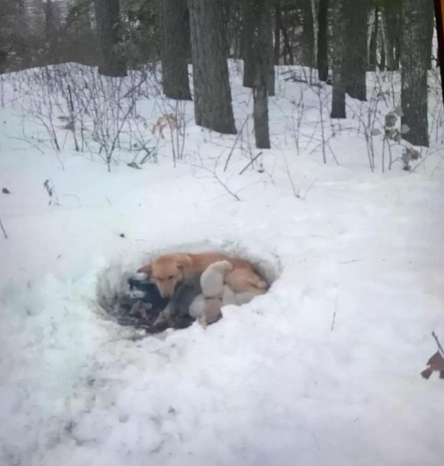 Η γενναία μαμά είχε σταματήσει να παράγει γάλα και τα 3 εβδομάδων μωρά της ήταν τόσο πεινασμένα και κρύα. Όταν δεν μπόρεσε να βρει καταφύγιο, η σκυλίτσα έσκαψε μια φωλιά στο χιόνι και τύλιξε το σώμα της γύρω από τα κουτάβια της, κάνοντας ό,τι καλύτερο μπορούσε για να προστατεύσει τη μικρή της οικογένεια, ενώ προσπαθούσε να επιβιώσει η ίδια.