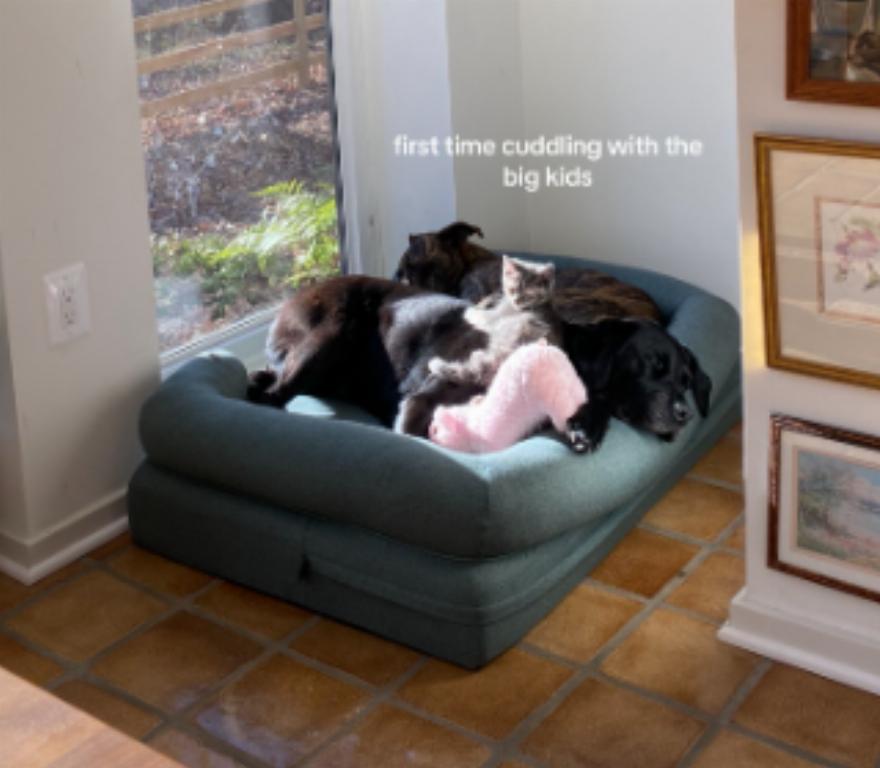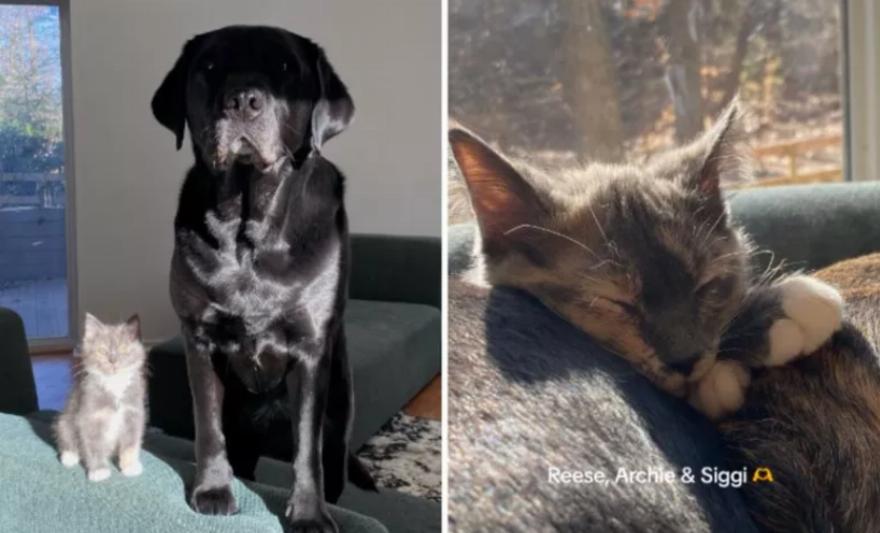Αυτή η ιδιοκτήτρια, γνωστή στο TikTok ως @katedavidsun, έχει δύο πολύ μεγάλα σκυλιά που ονομάζονται Reese και Archie, αλλά πρόσφατα καλωσόρισε στο σπίτι της ένα γατάκι που ονομάζεται Siggi. Θα πίστευε κανείς ότι το μέγεθος του Reese και του Archie θα ήταν αρκετό για να τρομάξει οποιοδήποτε μικροσκοπικό ζώο, αλλά η Siggi κατά κάποιο τρόπο ήξερε ότι ήταν οικογένεια.