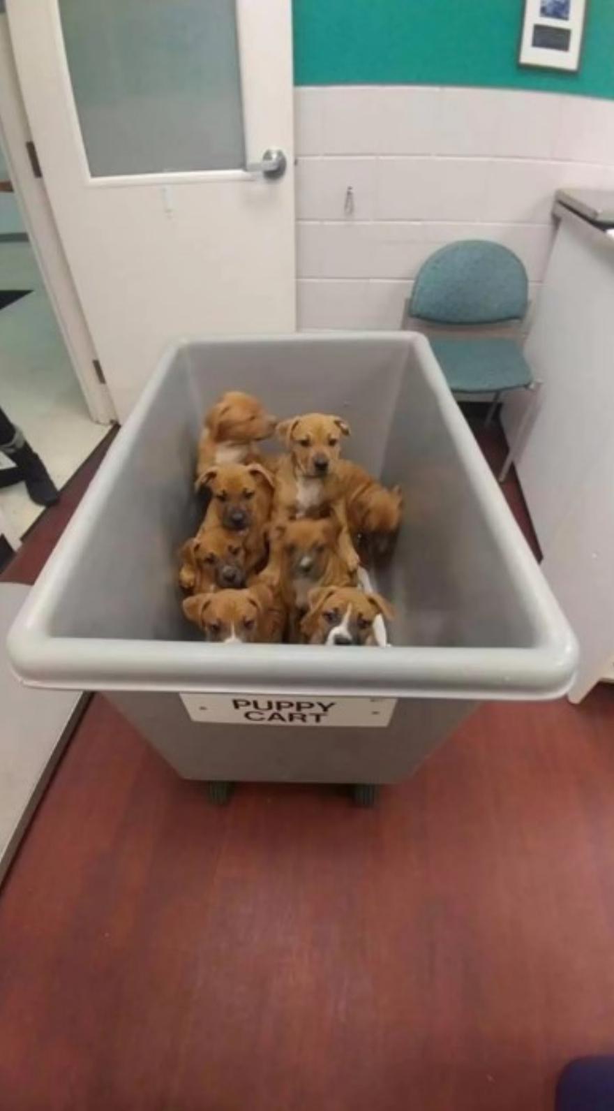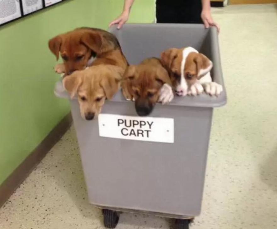 Οι υπάλληλοι του καταφυγίου δημιούργησαν ένα “καρότσι κουταβιών”, ένα μεγάλο καρότσι με μια αξιολάτρευτη ετικέτα που έχει σχεδιαστεί για να μεταφέρει κουτάβια μέσα στο καταφύγιο. Δεν είναι μόνο μια απίστευτα έξυπνη εφεύρεση, αλλά δεν υπάρχει επίσης απολύτως τίποτα πιο χαριτωμένο από ένα τεράστιο καρότσι με κουτάβια που σπρώχνονται μαζί σε έναν διάδρομο.