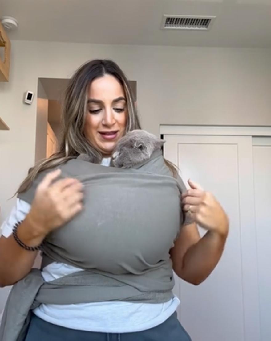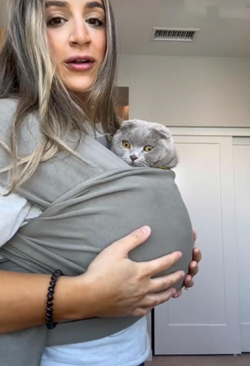 Η χρήση μιας βρεφικής κουβέρτας για να μεταφέρετε μια προσκολλημένη γάτα μπορεί να είναι μια δημιουργική λύση αν η γάτα σας απολαμβάνει να είναι κοντά σας και θέλετε να κρατήσετε τα χέρια σας ελεύθερα.
