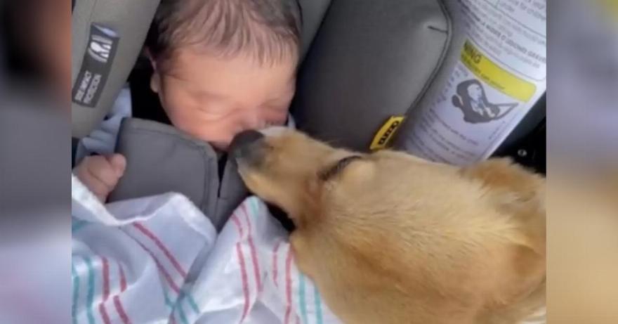 Η σκυλίτσα αγάπησε κατευθείαν τον μικρό της αδερφό