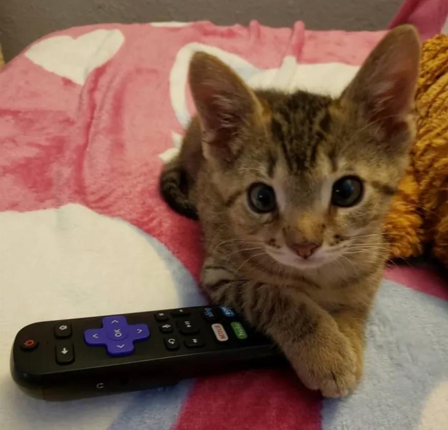 Στις αρχές του έτους, ένα γατάκι σε μέγεθος παλάμης βρέθηκε στο δρόμο, πεινασμένο και μόνο του. Ένας τοπικός διασώστης ζώων το μάζεψε και το πήγε στο Wrenn Rescues (στο Λος Άντζελες) την τελευταία στιγμή.