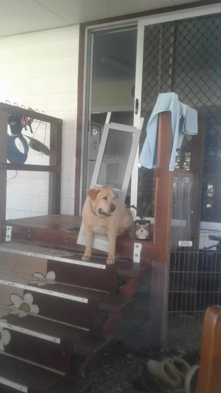 “Ο μπαμπάς ήρθε νωρίς στο σπίτι και είδε το μισό πάνελ της πόρτας του σκύλου στο έδαφος και κοίταξε μέσα και ο Drax ήρθε περιπλανώμενος στο διάδρομο πολύ άνετα με αυτό πάνω του”, είπε η Hulley. “Κοίταξα και ο Drax ήταν στις σκάλες και με κοιτούσε … μου έμεινε το στόμα ανοιχτό”.