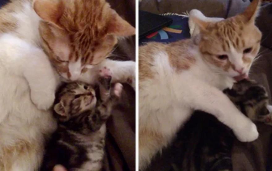 Ένα ζευγάρι βρήκε ένα μικροσκοπικό γατάκι χωρίς μαμά
