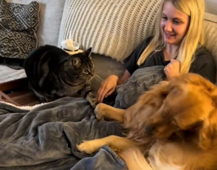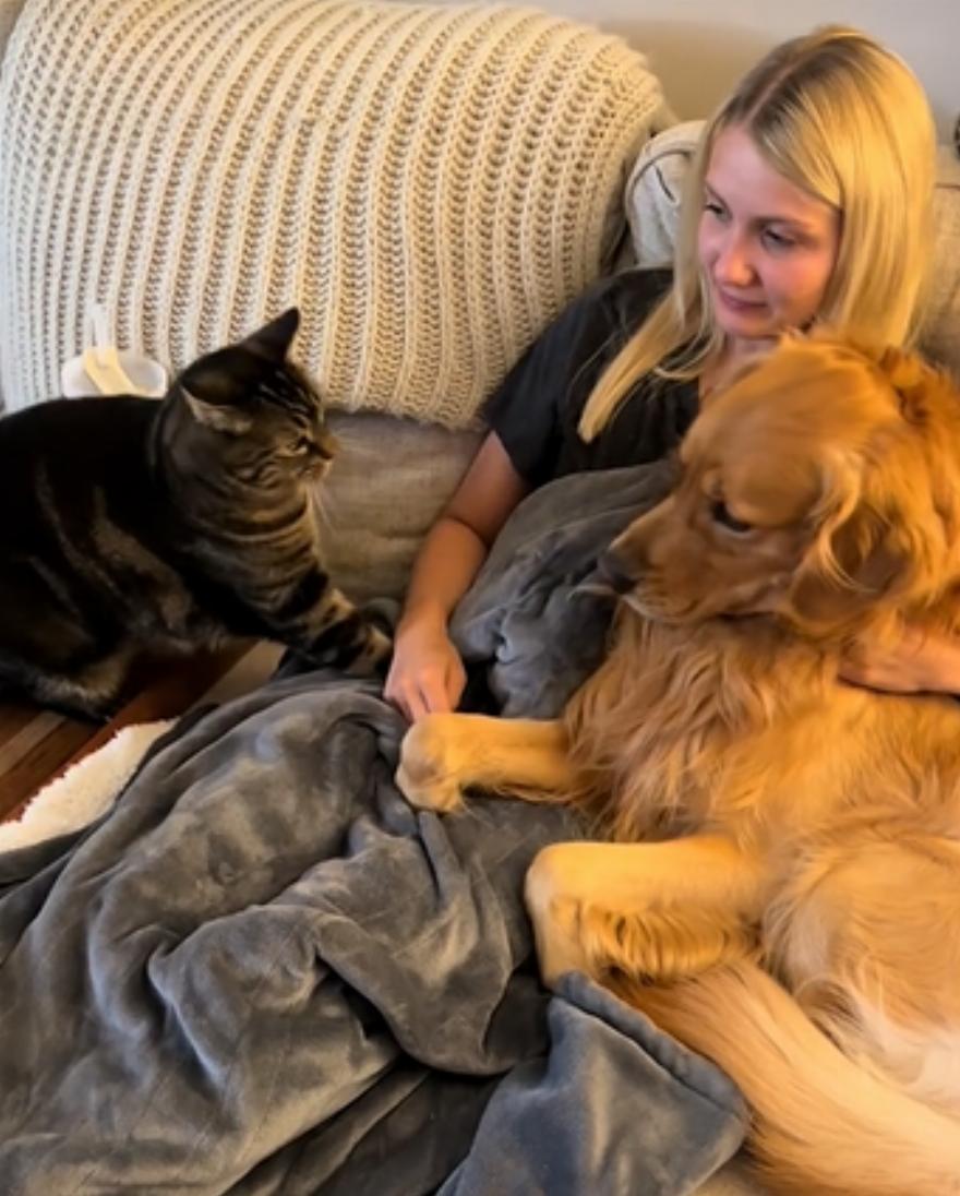 Όλη την ώρα νομίζαμε ότι η γάτα θα αγκαλιαζόταν ακριβώς δίπλα στον ιδιοκτήτη της αφού είχε διώξει τον σκύλο, αλλά αυτό δεν συνέβη. Ο κύριος Milo ο Chonk σκέφτηκε ότι αν δεν μπορούσε να καθίσει αυτός δίπλα στον ιδιοκτήτη του, κανείς δεν θα μπορούσε.