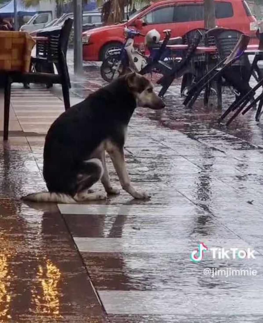 Ένας σκύλος που καθόταν έξω από ένα κατάστημα στη Μαλαισία υπό καταρρακτώδη βροχή τράβηξε την προσοχή των περαστικών επειδή έμοιαζε τόσο θλιμμένος και εγκαταλελειμμένος.