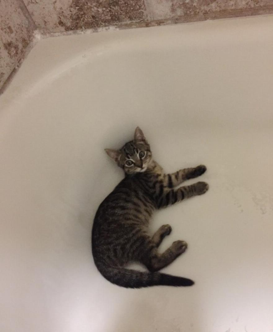 Τώρα μπορεί να απολαμβάνει πιο άνετα τα μέρη του σπιτιού που μοιράζονται, συμπεριλαμβανομένης της μπανιέρας, όπου παίρνει υπέροχους υπνάκους.
