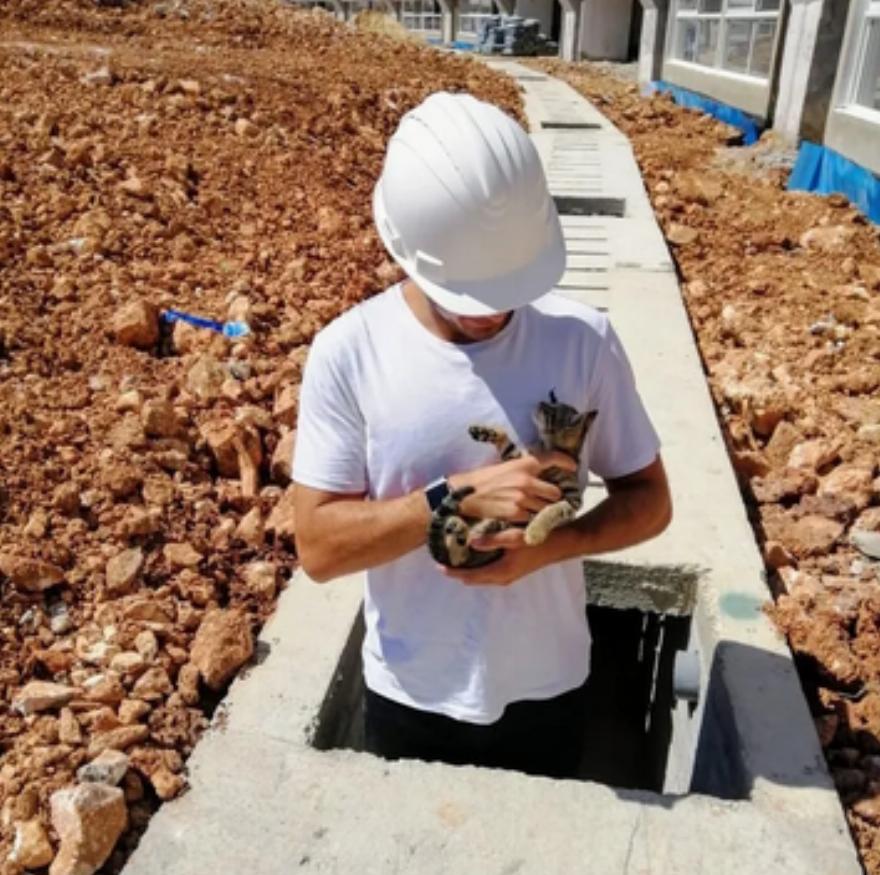 Ο Mohamed Haydar, ένας μηχανικός στο Λίβανο, εργαζόταν στο εργοτάξιο όταν εμφανίστηκε ένα μικρό αδέσποτο γατάκι και αποφάσισε να μείνει κοντά του.