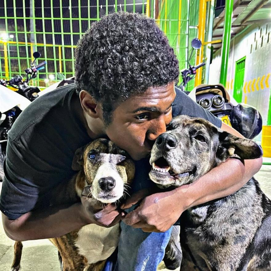 Τις προάλλες, ένας επισκέπτης του πάρκου στην πόλη Bucaramanga της Κολομβίας, εντόπισε μια γλυκιά σκηνή να διαδραματίζεται σε κάποια σκαλιά εκεί κοντά. Εκεί, ο Choco και τα σκυλιά του κάθισαν μαζί στον ζεστό νυχτερινό αέρα.