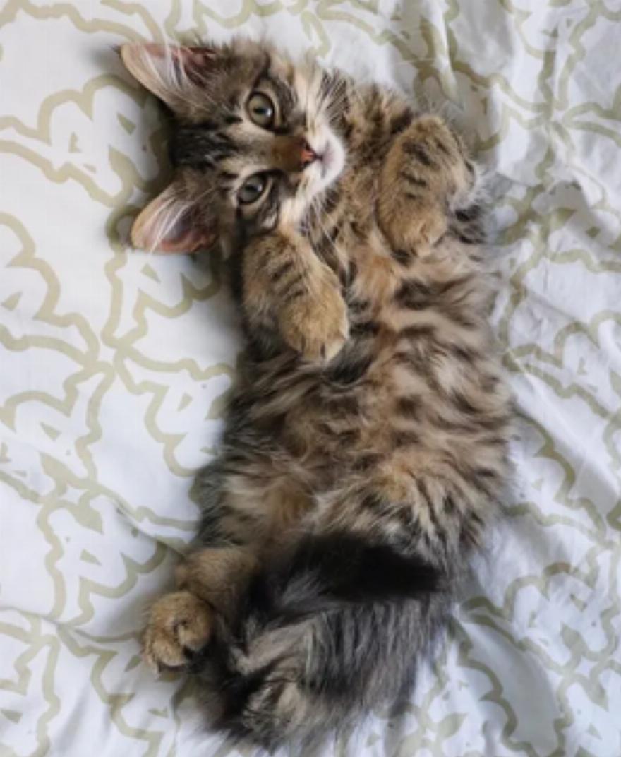 Μετά από ένα μπάνιο, μια επίσκεψη στον κτηνίατρο και άφθονο καλό φαγητό, το γατάκι άρχισε να συνέρχεται. Με την πάροδο του χρόνου, έμαθε ότι οι άνθρωποι δεν είναι τόσο κακοί και ότι οι αγκαλιές είναι αρκετά ευχάριστες.