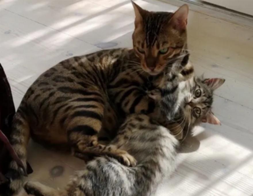 Ο γάτος Gilbert από τη Δανία απολαμβάνει τις τακτικές του βόλτες με τους ιδιοκτήτες του. Νωρίτερα φέτος, ενώ είχαν βγει για βόλτα, εντόπισε ένα μικρό γατάκι κάτω από έναν θάμνο και αποφάσισε να το ελέγξει.
