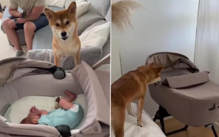 Ένας σκύλος με δυσκολία συγκρατεί τον ενθουσιασμό του όταν συναντά για πρώτη φορά τον νεογέννητο γιο του ιδιοκτήτη του, όπως δείχνει ένα viral βίντεο.