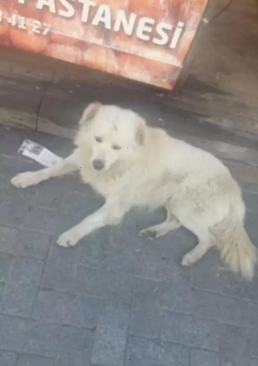 Ο φαινομενικά αδέσποτος σκύλος καθόταν έξω από μια καφετέρια και έδειχνε ταλαιπωρημένος από τη ζωή στους δρόμους.