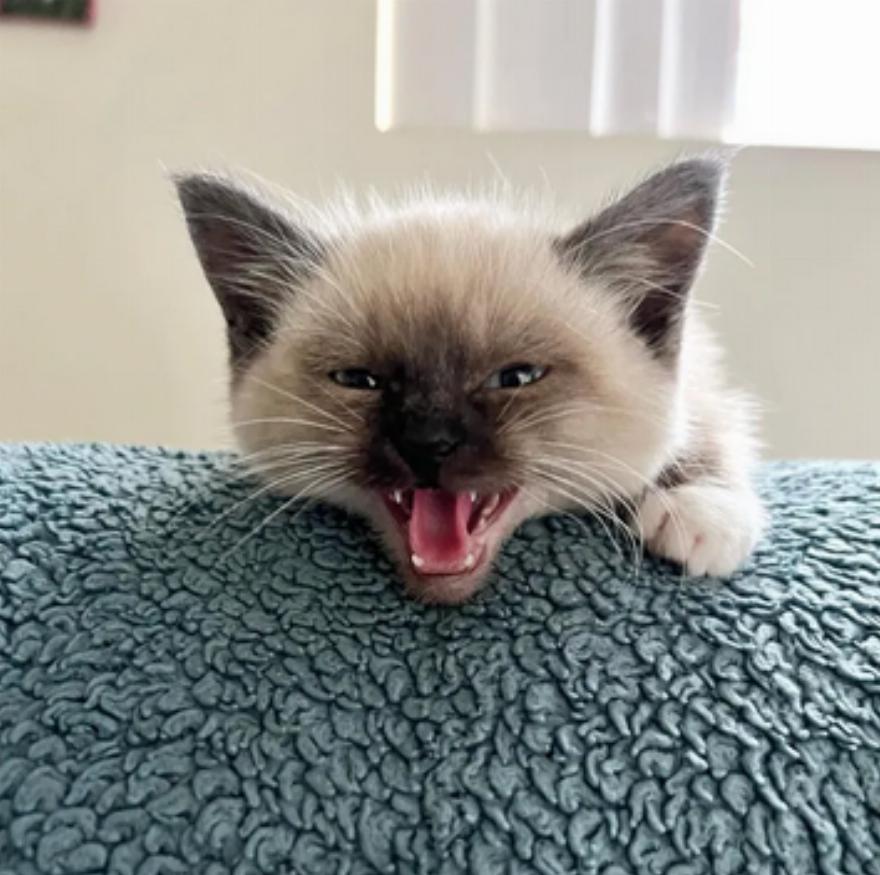 Μέσα σε λίγες μόνο ημέρες, ο Wasabi έκανε τα μεγαλύτερα βήματα και δεν προσπαθούσε πλέον να δαγκώσει το χέρι που τον ταΐζει. “Ενώ ήταν ακόμα το πιο άτακτο από τα τρία γατάκια, κοιμόταν σχεδόν αμέσως αν τον τύλιγα σε μια βρεφική κουβέρτα”.