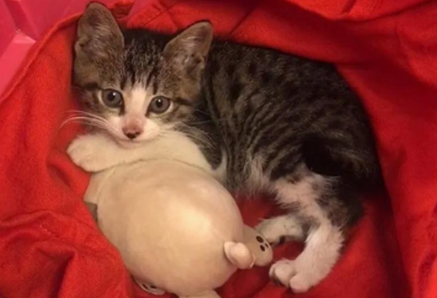 Το μικρό γατάκι εκτιμάται ότι ήταν περίπου δύο μηνών. Ήταν μικροσκοπική και τόσο πεινασμένη που καταβρόχθιζε όλη την τροφή που μπορούσε να χωρέσει η κοιλιά της.