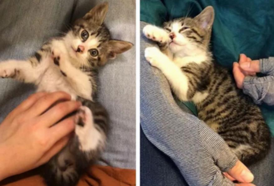 Αφού έφαγε με την καρδιά της, άρχισε να εμπιστεύεται με το διασώστη της, καθώς συνειδητοποίησε ότι επιτέλους ήταν ασφαλής. Το γατάκι ήταν εξαντλημένο μετά από τη μακρά δοκιμασία. Μπορούσε επιτέλους να κοιμηθεί και να αναπληρώσει τον χαμένο ύπνο.