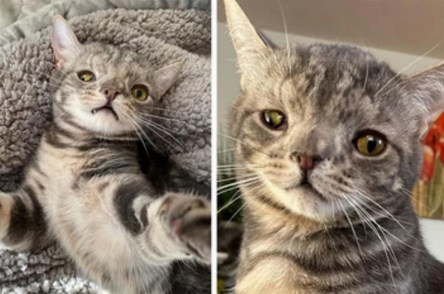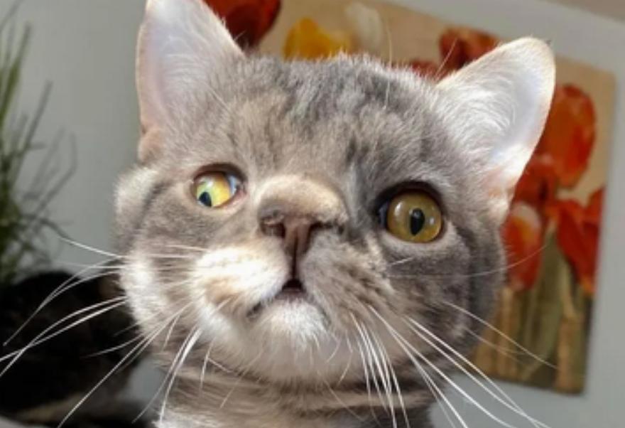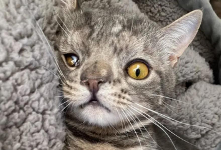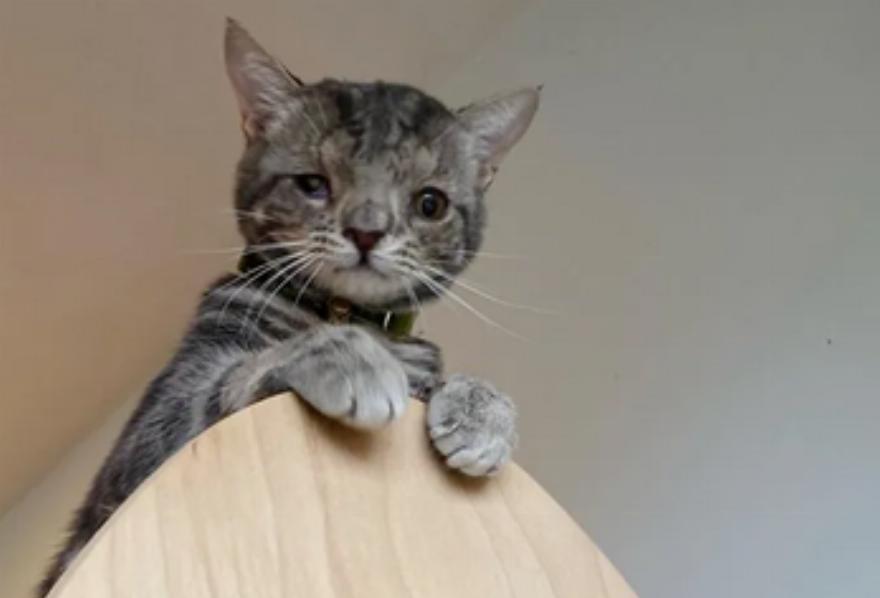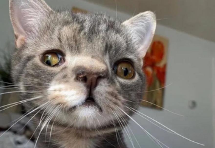 Το tabby γεννήθηκε με μια γενετική πάθηση που ευθύνεται για τα μοναδικά χαρακτηριστικά στο πρόσωπό του. Έχει πιο επίπεδη μύτη, μάτια που πηγαίνουν προς διαφορετικές κατευθύνσεις και υδροκέφαλο. Παρ’ όλα αυτά, είναι το πιο χαρούμενο γατάκι και αναζητά συνεχώς την προσοχή των ανθρώπων.