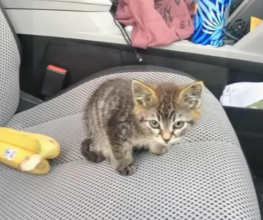 Καθώς πλησίαζε, συνειδητοποίησε ότι επρόκειτο για ένα γατάκι που είχε κολλήσει στη λωρίδα κυκλοφορίας