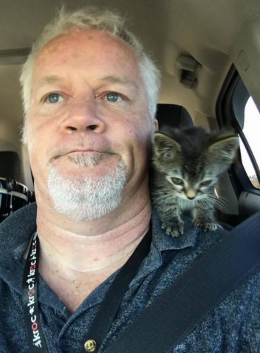 “Πήγαινα στη δουλειά και είδα τα αυτοκίνητα μπροστά μου να περνούν πάνω από κάτι στο δρόμο και συνειδητοποίησα ότι ήταν ένα γατάκι που καθόταν όρθιο και κουνιόταν σαν φύλλο”, δήλωσε ο Chuck.