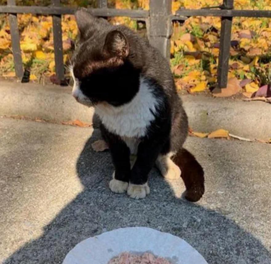Μια γάτα tuxedo εμφανίστηκε σε ένα πάρκο στο Μπρονξ (Νέα Υόρκη), ψάχνοντας για φαγητό. Ήταν πολύ αδύνατος. Ένας τοπικός διασώστης τον εντόπισε και προσπάθησε να τον βοηθήσει.