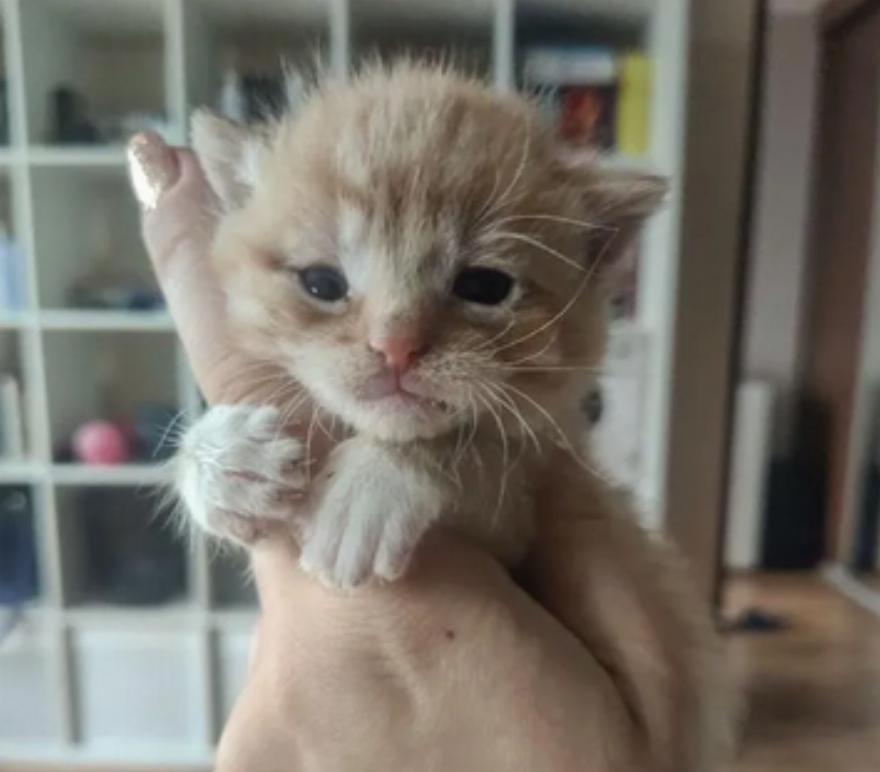 Τα γατάκια ήταν πολύ υποσιτισμένα και λιποβαρή όταν έφτασαν στην κλινική. Παρά τις προσπάθειές τους να τα σώσουν και τα δύο, το ένα από τα γατάκια δυστυχώς δεν τα κατάφερε. Το εναπομείναν πορτοκαλί γατάκι κρατήθηκε με όλη του τη δύναμη.