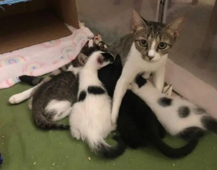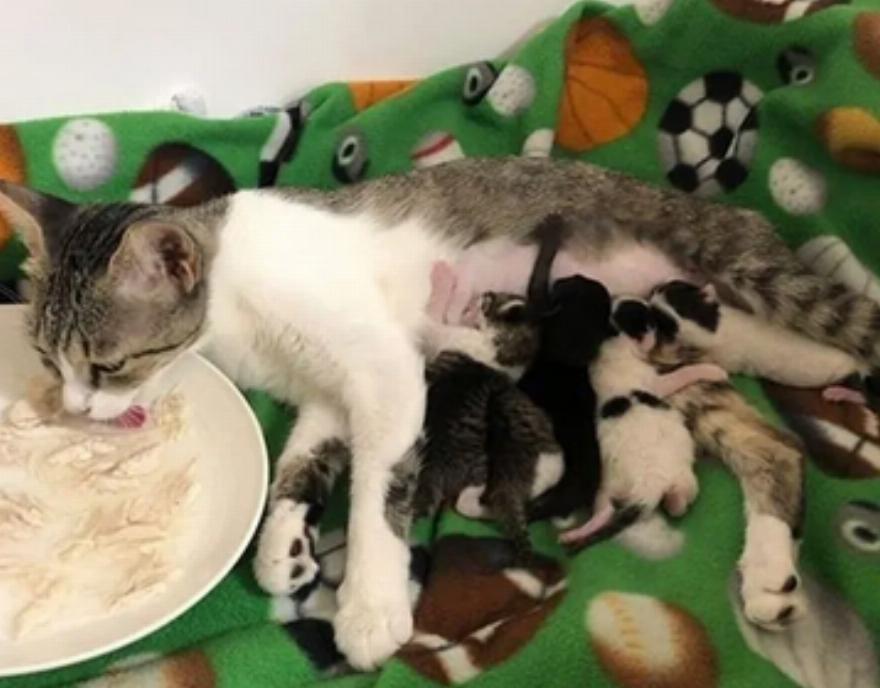 “Όταν την πήραμε, ήταν κάτω από επτά κιλά, το οποίο είναι τρομερά αδύνατο για μια έγκυο γάτα. Ήταν έγκυος για μερικές εβδομάδες, αλλά δεν έτρωγε και έχανε βάρος πολύ γρήγορα”, δήλωσε η Shelbi Uyehara, ιδρύτρια του Jin’s Bottle Babies.