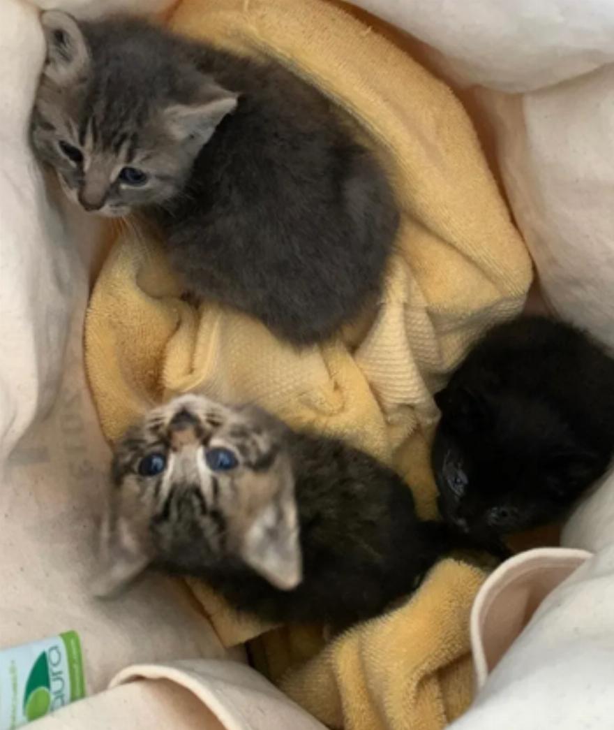 Λόγω της πανδημίας, ο ιδιοκτήτης έκλεινε το κατάστημά του και ήθελε να μεταφέρει τα γατάκια σε ασφαλές μέρος πριν κλειδώσει την πόρτα. Ένας εθελοντής των ανταποκρίθηκε αμέσως και έσπευσε στο σημείο.