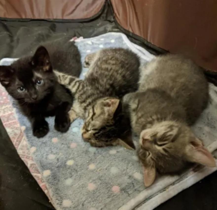 Ένας διασώστης επέστρεψε για να ψάξει για τη μητέρα γάτα, αλλά δεν ήταν πουθενά. Το τρίο των αιλουροειδών, η Delilah (tabby), η Petunia (γκρι) και ο Sonny (μαύρος), έλαβαν την ιατρική φροντίδα που χρειάζονταν και συνήλθαν.